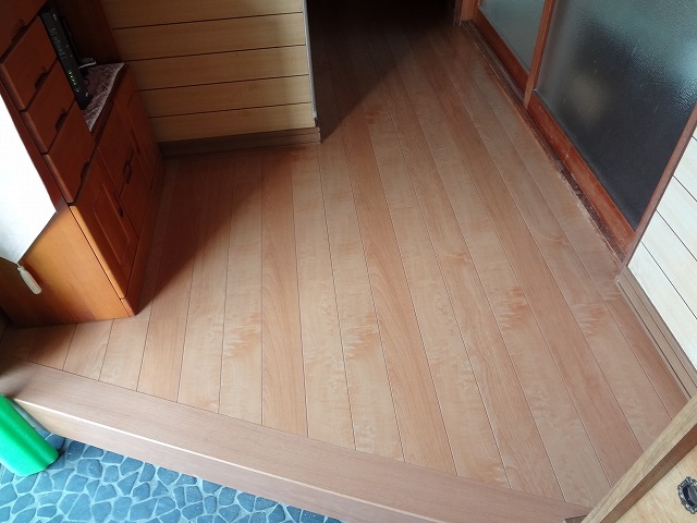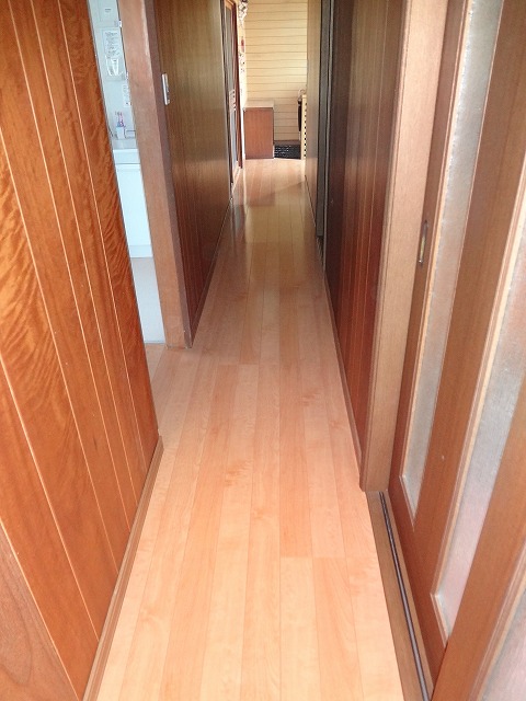 廊下もフロアーが貼り終り、巾木も取付けました。