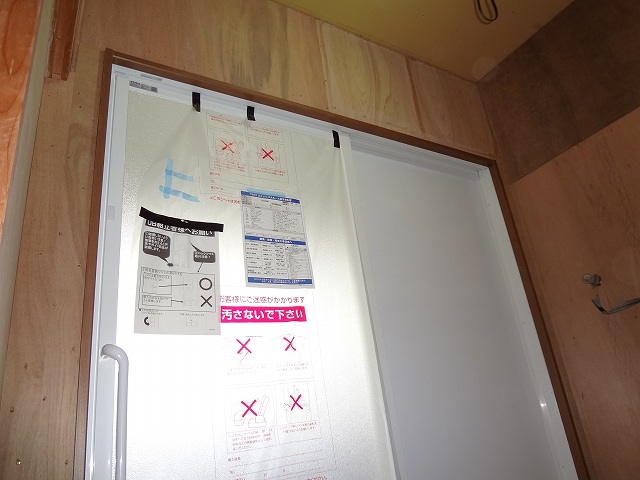 明日は、洗面所のクロス工事と玄関廊下のフロアー貼りです。