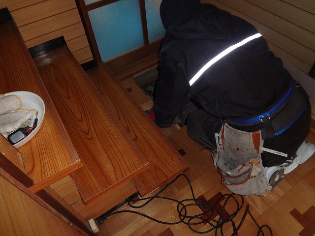 玄関のふわふわしている部分を切り、内部の確認しています。