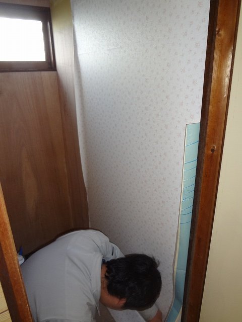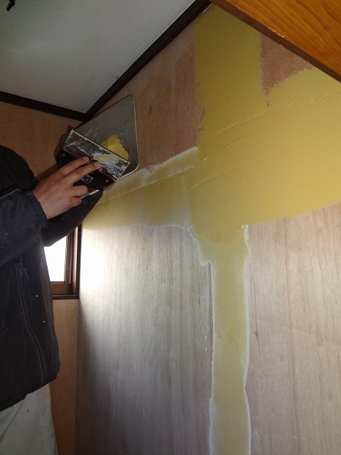 トイレのパテ処理です。クロスを貼った時に段が出ないように滑らかに