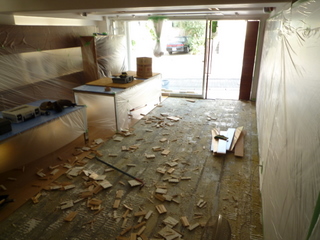 弊社ギャラリーのフローリングの貼替がはじまりました。
