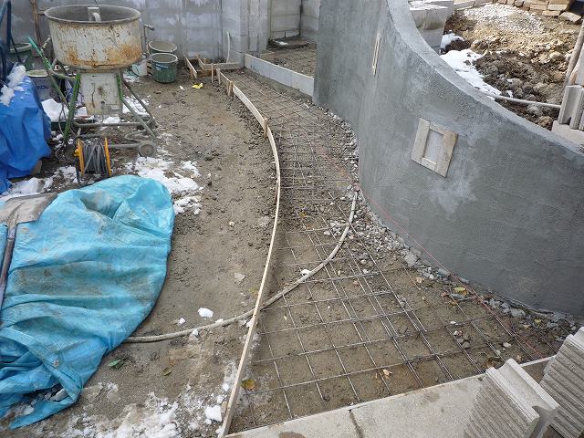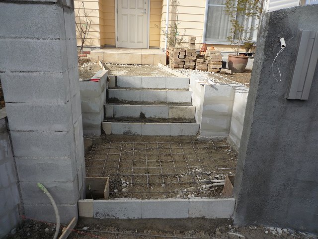 階段の石張り部分のコンクリートを打設しました。