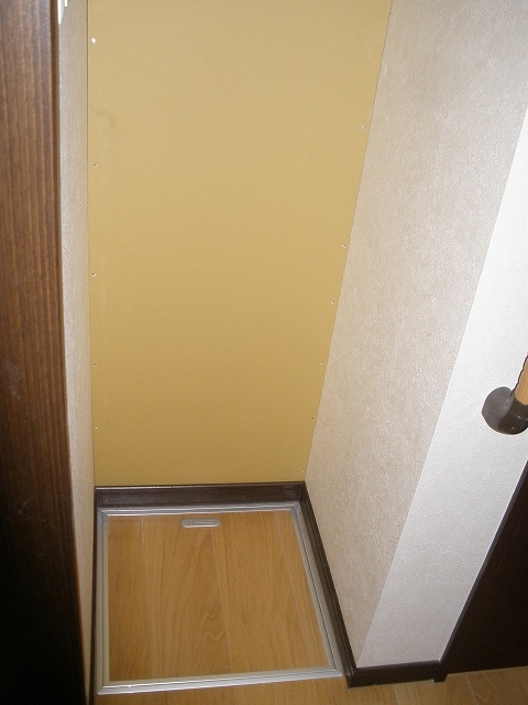 クロスが貼り終りました。廊下の狭い部分に造ったので、白いクロスと