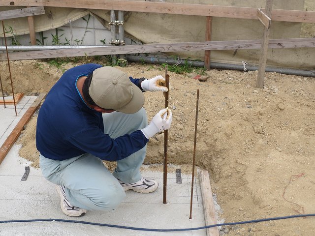 ベースの縦鉄筋も配筋されました。