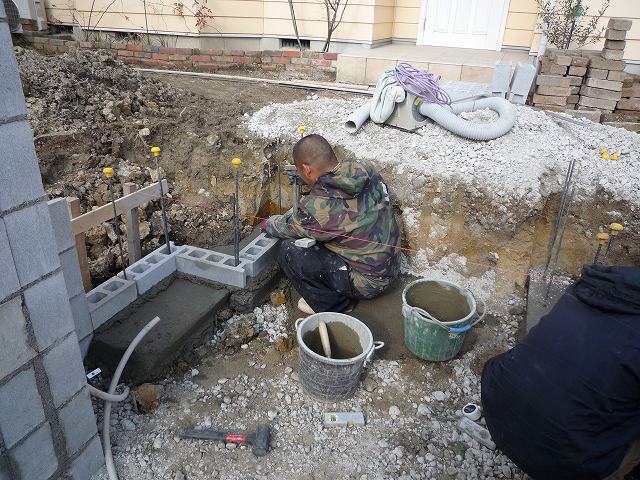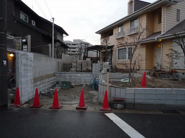 追加の駐車場のブロック積みです。後一段明日積みます。