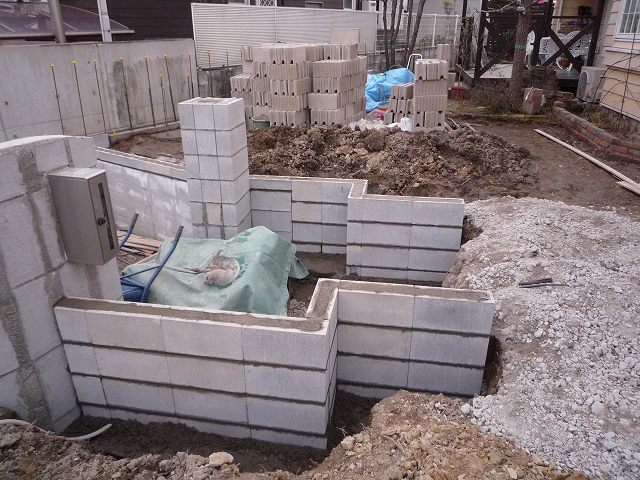 ブロック積みです。