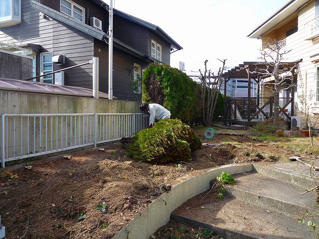 奥の植栽も撤去していきます。