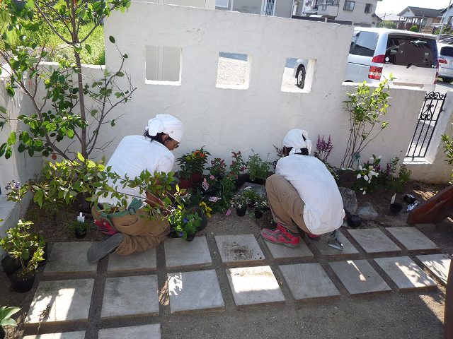 季節の花を植え替えるように考えました。前より大きい植栽がなくなったせいか