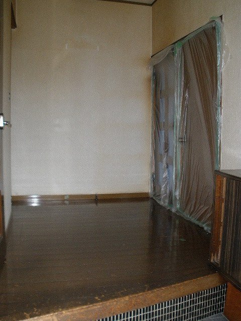 玄関に埃がいかないようにビニールで入口を塞ぎます。