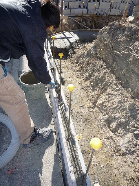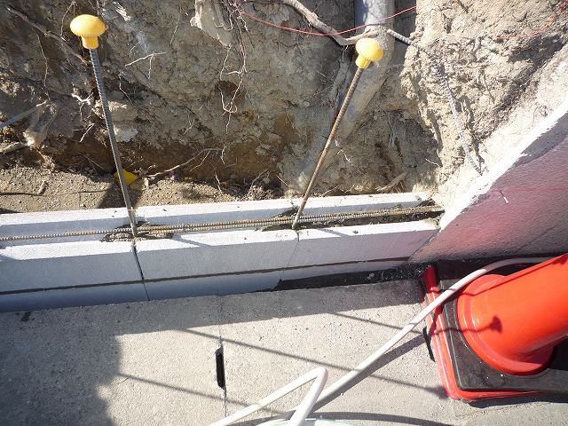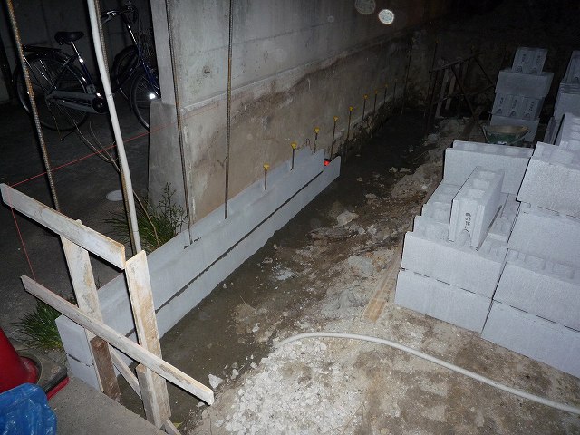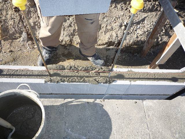 先ほどの横の鉄筋とブロックの間にモルタル(セメント)を入れています。