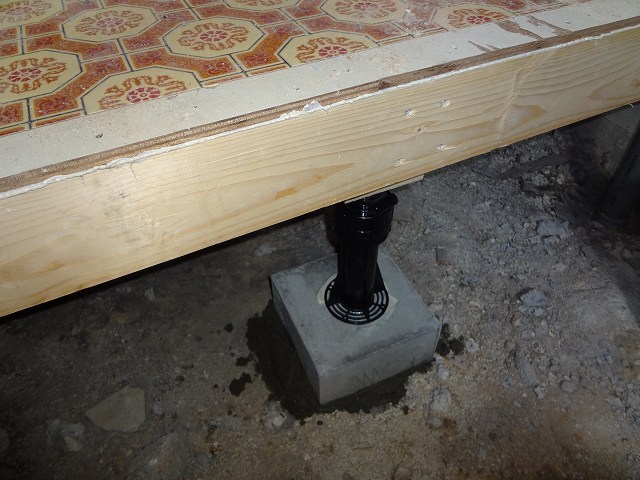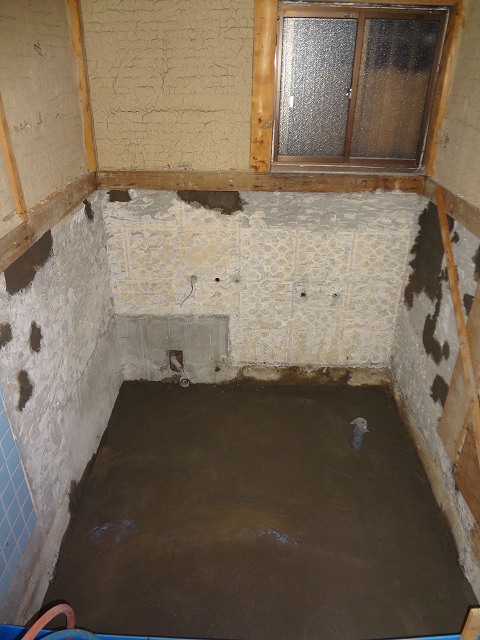 ユニットバスの脚が安定するように土間にコンクリートを打ちます。