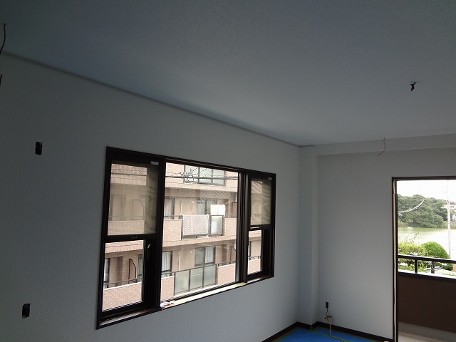 リビングのクロスも貼り上がりました。まだ、少しテレビボードの部分だけ